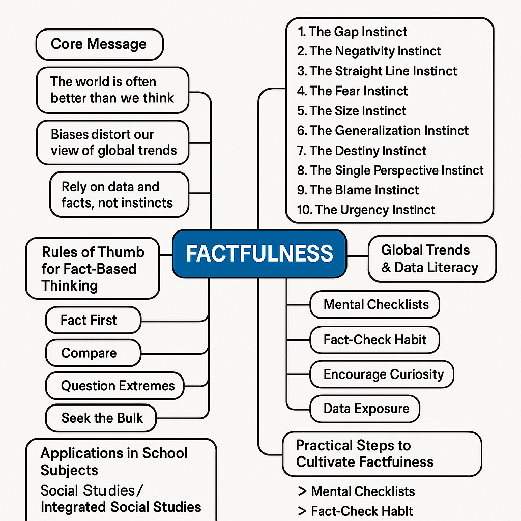 『팩트풀니스』는 우리의 인지적 편견 10가지(갭 본능, 공포 본능, 일반화 본능 등)를 제시하며, 데이터와 사실에 기반한 사고의 필요성을 강조합니다. 이를 통해 우리가 세상을 더욱 정확하게 바라보고, 잘못된 인식을 바로잡도록 안내합니다.